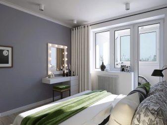 - The increase in the bedroom due to the loggia, the effect of the visual expansion of space.