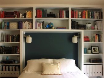 If during repair the doors are enlarged and made in the form of compartment doors, and the room is quite small, this allows you to put a bed next to the entrance. To save space from visual heaviness, You can increase the size of the window opening. If the room is also narrow, a niche with shelves can be built against the wall of the headboard. For visual balance, racks or the ceiling above them can be equipped with backlight.