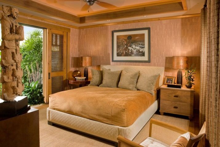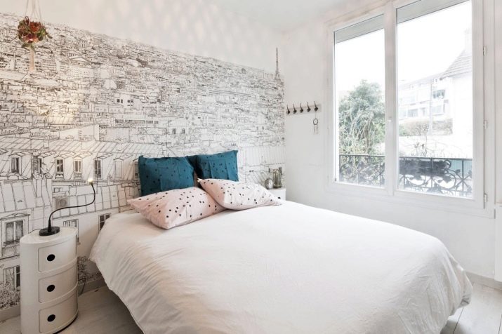 You can trim accent wallpaper protrusion at the head, but then the rest of the walls will have to be covered with canvases without print. Whatever type of design the layman chooses, you cannot glue all the walls with accent wallpaper: this overloads the interior. It is enough to select only part of the wall at the head.