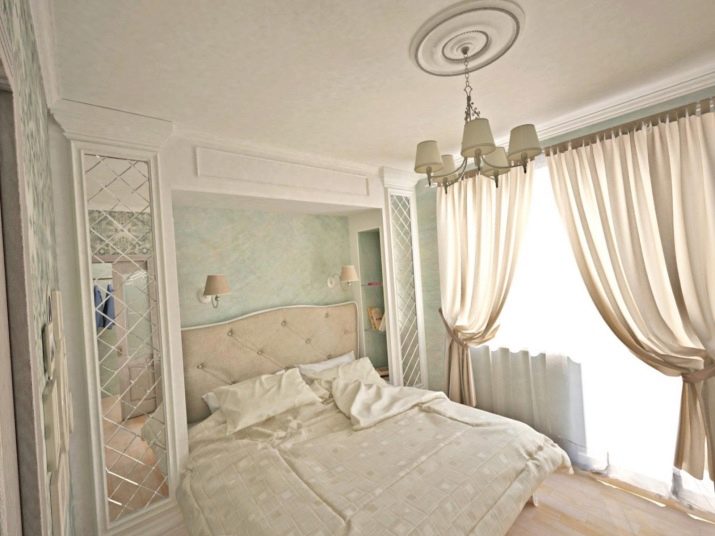 There are no special secrets here: the smaller the room, the simpler the design. For example, it will simply not be possible to realize the classic style of style here: on a few square meters there is no place for a massive chandelier with a candelabra, a chic bed with carved legs, a massive ceiling with stucco moldings and a gold pattern.