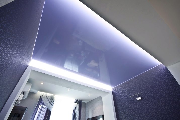In priority stretch filmpartially supplemented drywall. For the illusion of increasing space, you can choose panels with a glossy or satin texture. At the same time, the degree of reflectivity must be chosen no more than average, so that instead of increasing the space you do not double the number of elements of the arrangement. In order not to overload the interior, it is better to select design without a picture, leaving the role of emphasis on the wall cladding.