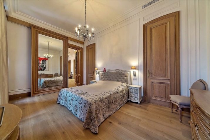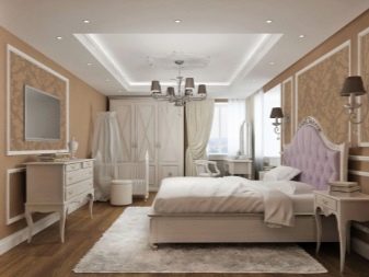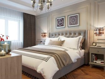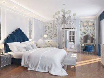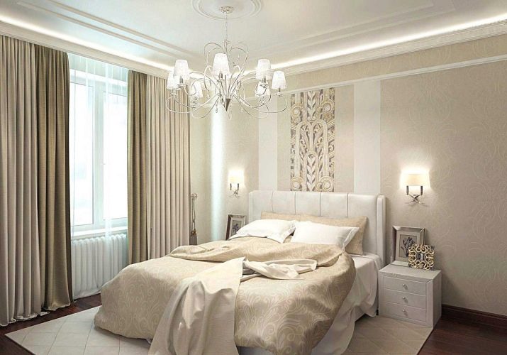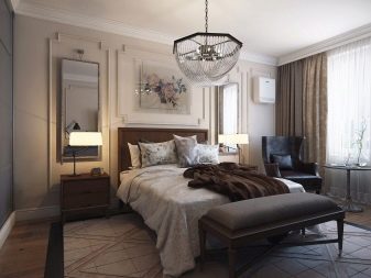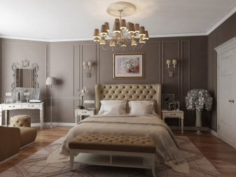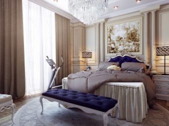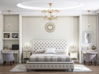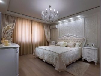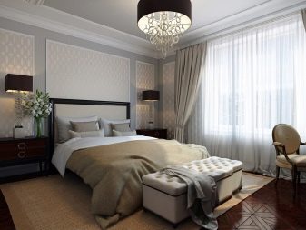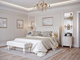 Despite the fact that the bedroom is intended for a complete rest and good sleep, neoclassicist loves various lighting devices.