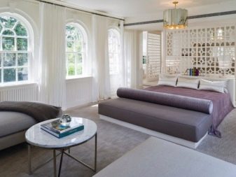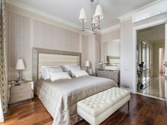 Other pieces of furniture are placed in the bedroom according to the rules of symmetry. In addition to the usual bedside tables located on either side of the bed, in the neoclassical bedroom, as a rule, there is a place for such items: