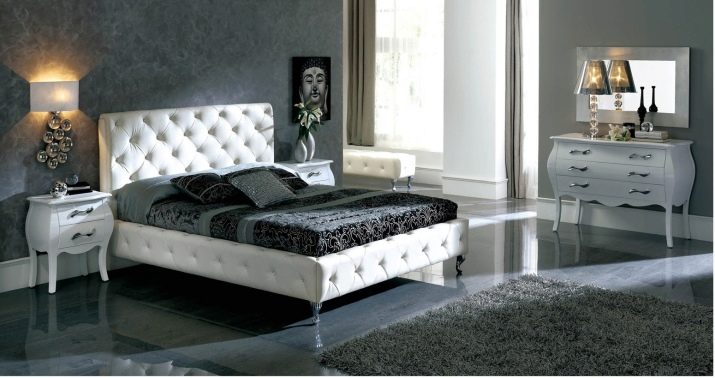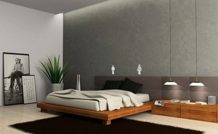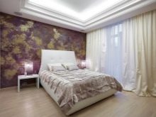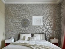 Fans of a minimalist style can be advised to stick plain vinyl or non-woven wallpaper. Universal option - wallpaper for coloring. The bedroom can also be decorated in high-tech style. In this case, all shades of gray, steel, silver are welcome. Small black details are also allowed. But you need to be careful with it, because the bedroom is not a place for gloomy flowers.