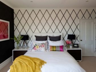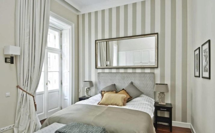 For a long bedroom, wallpaper with a vertical or diagonal strip is suitable. If the bedroom is narrow, then you can optically expand it using a horizontal pattern.