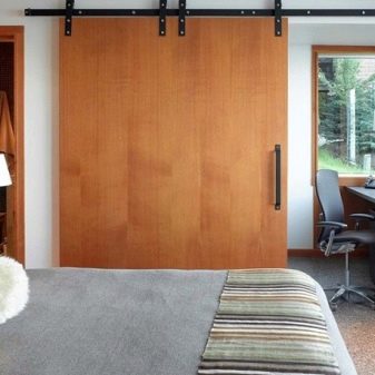 - Sliding doors always look advantageous. Suitable for any style and design. However, they are best set when the area of the room allows you to do this. Materials such as glass, plastic and wood are ideal for doors.