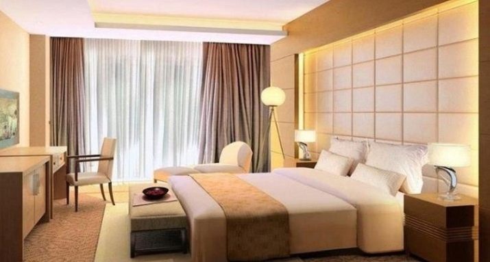 This item needs special attention. If the emphasis is on the bed area, then the light of the chandelier should be soft. The night light on the nightstand will look good. The yellow shade of light calms, adjusts to rest. The workplace should be equipped with a table lamp with bright light. The lights that are located around the perimeter of the whole room look good.