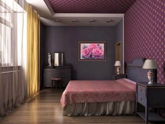 When the bedroom faces the sunny side, it is, on the contrary, wise to cool it, using gray, blue, as well as dark variants of blue and green. A bedroom filled with wooden furniture and decoration requires neutral shades, for example, light variations of pearl, golden and purple.