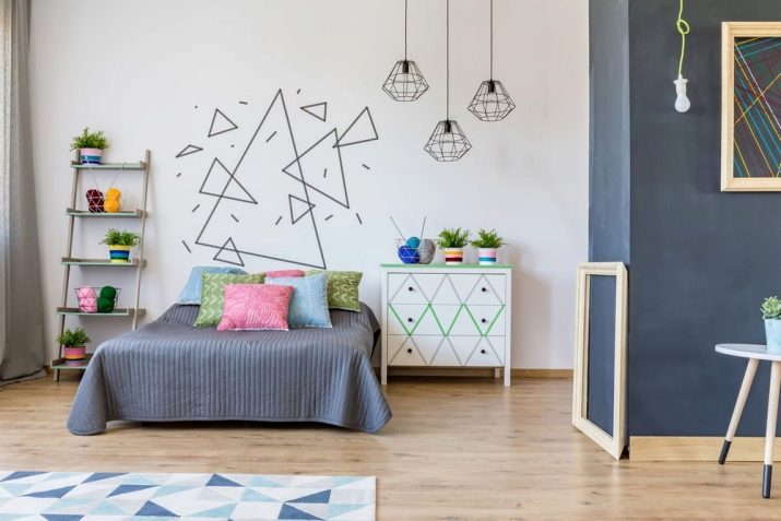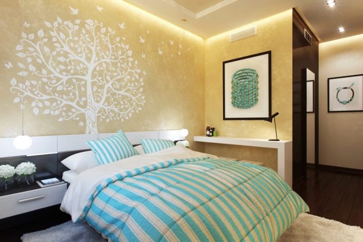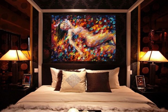 The main heroine of the bedroom is the bed, and the wall at the head of the bed serves as her stage. This wall should not remain empty, it is ideal for decoration.After all, thematic paintings or stylish patterns located on it will not irritate those who fall asleep. At the same time, they will help to create an interior in a unique style.