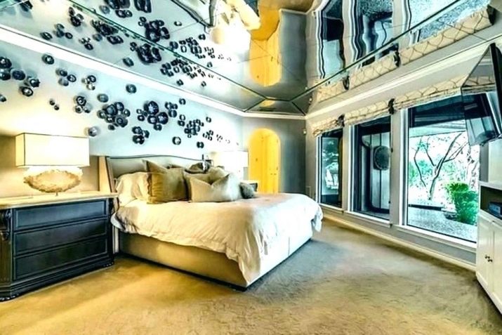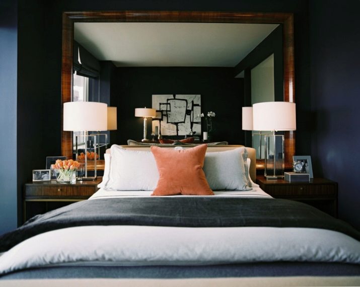 The mirror wall above the bed will create a romantic atmosphere, visually expand the room, and framing the mirror with a figured baguette will add sophistication to the interior.