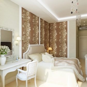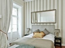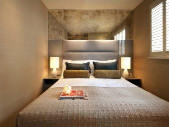 The walls of the bedroom can be correctly painted in a uniform tone or taped with wallpaper, plain or with simple geometric patterns. A saturated shade is acceptable for designing a narrow side. To expand the space, use a horizontal strip. The ceiling is best left in plain white without any designer additions.
