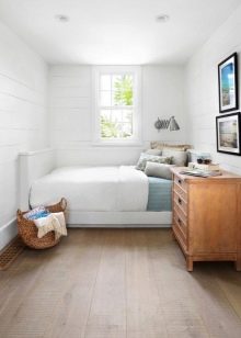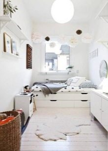The interior of an ordinary bedroom can be decorated using any design, but options for a narrow room have certain limitations. It looks best in a narrow room Scandinavian style. In most cases, it is decorated in light shades, and is also multifunctional. Natural materials and simple, non-overloaded parts create a comfortable and relaxing atmosphere. Color accents are placed using lamps and textiles, as well as unusual textures.