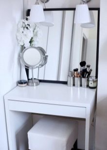 A work or dressing table feels best at the window to provide the necessary amount of daylight. If this does not work, then the desktop should be adapted for zoning the space, placing it along or across the wall.