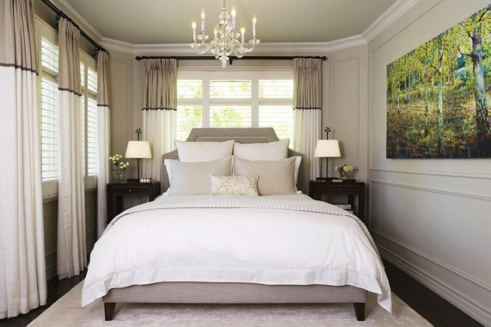 Light colors look best in a narrow room, since dark ones emphasize bad geometry. In addition, the bedroom palette should relax, and therefore bright colors will have to be abandoned. Work well in elongated space white, milky, light gray and hazel shades.