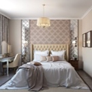 - Wallpaper. Universal design of wall coverings. A huge variety of shades, patterns and textures allows you to design a room with a special design approach. For a bedroom, it is preferable to use wallpaper in pastel colors with a decorative pattern that is not conspicuous.