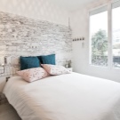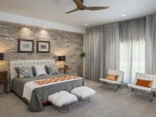 When decorating a modern bedroom, they are often used embossed texture. It can be a material that imitates wood, stone or leather. With so much variety on the wall you can create 3D panel. In addition, embossed textures will help to focus on a particular area of the bedroom.