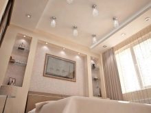 - Stretch ceiling. Everyone knows the way to finish the ceiling. Only with full coverage does a problem arise with the installation of artificial light.