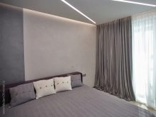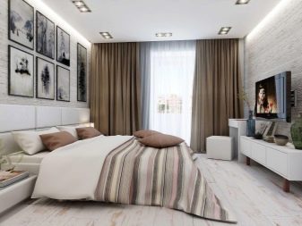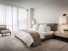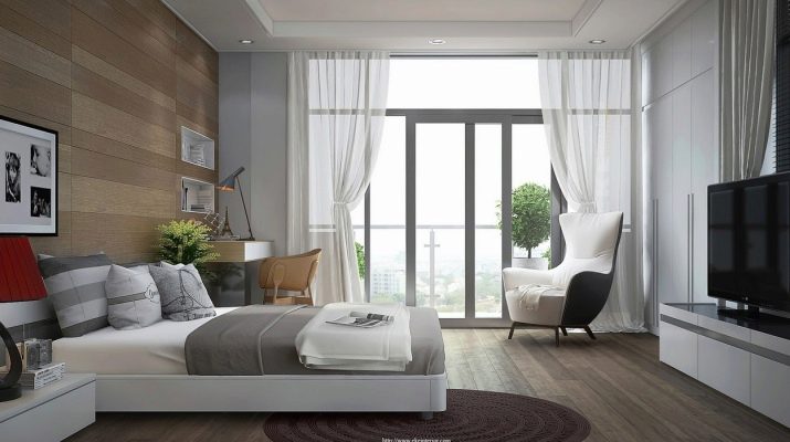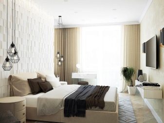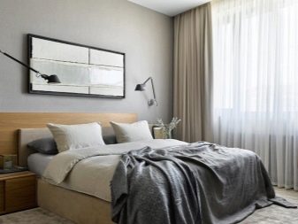 Window openings are made in the most modest design, using thin tulle and Roman curtains. Alternatively, roller blinds are acceptable. To give lightness to the contemporary style, you need to pay special attention to artificial lighting. All bulbs must be hidden. Having made a bedroom in the described style, everyone can feel the practicality and multifunctionality of the environment.