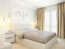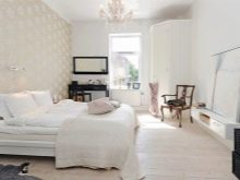 And yet, the most luxurious design option is considered to be the snow-white finish of the bedroom, where mostly white furniture with a glossy texture is used.