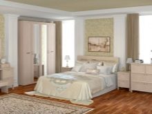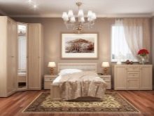 Light shades of the classic room are in perfect harmony with the bedroom set, which has the texture of natural wood. Alternatively, you can use white or milk-colored furniture.