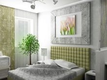 - Green. The color itself is relaxing, all its shades contribute to the restoration of the emotional background. With the correct arrangement of green shades, a person will be able to tune in to a positive wave and go to bed with a good mood. White, brown with a warm shade and gray with a pearl shimmer are suitable as a harmonious pair for any of the green shades. As contrasting options, a beige, orange or yellow palette should be used.