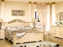 The furniture set for a bright bedroom is selected taking into account the planned stylistic decision of the room. To maintain color shades, a sleeping ensemble consisting of a bed, a wardrobe, nightstands and a table should look similar to a light type of room. In the case when a contrasting palette of warm tones was used in the design of the room’s design, it will be appropriate to choose a bed with a dark accent.