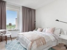 This style has incorporated the features of his Scandinavian counterpart. Both of these options require the use of simple forms of natural naturalness and neutral light shades. The contemporary style is characterized by minimalism and the presence of classic decor elements. For decoration, it is appropriate to dilute the bedroom sconces, consisting of several tiers, with a small carpet with colorful coloring, a saturated panel on the wall or photo wallpaper. All these elements allow you to get rid of the severity of a minimalist environment.