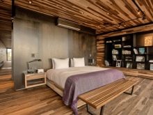 Thanks to the modern variety of building materials, any room, especially a sleeping room, can be made according to the latest trends in design art. For example, create an old ensemble. A bedroom made of materials imitating wood looks especially unusual, which creates a feeling of additional warmth and coziness.
