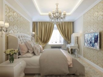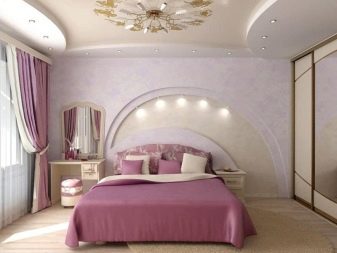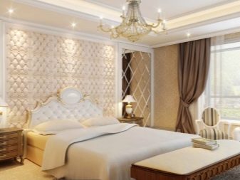 In large bedrooms, it is preferable to use multi-level ceiling designs, thanks to which it will be possible to create a special highlight.