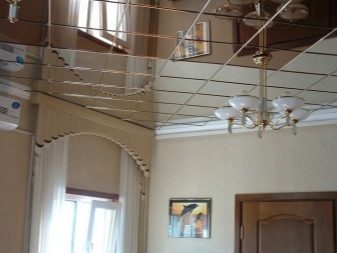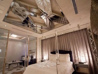 - Mirror ceiling. A bold decision that needs to be carefully considered. Of course, mirrors on a visual basis increase the space of the room. But at the same time he has to be constantly looked after and washed weekly.