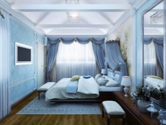 In addition, blue tones on a visual basis increase the free space of a bedroom, so that a person feels freedom, lightness and freshness.