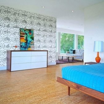 - Cork coating. The most suitable option for a bedroom, although it may seem monotonous. If you combine it correctly with parquet boards, you will be able to create a unique design.