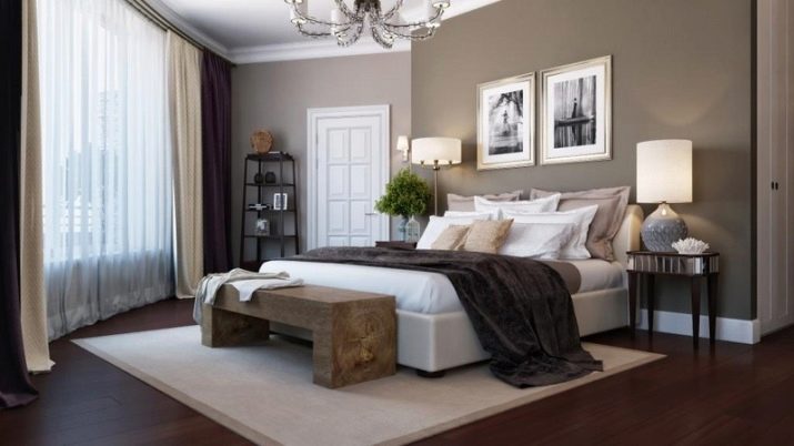 Do not forget about decor items. To dilute the dull colors in the bedroom, beautiful statuettes and white candles should be placed on the shelves. On the floor you can put a huge vase of flowers. To fill the room with a romantic atmosphere, you need to install LED lighting around the perimeter of the ceiling.