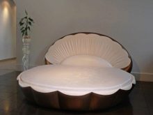 - There are also such types of double bed.that absolutely do not meet any standards.They have an irregular shape, but look really unusual. An example is a shell bed, which undoubtedly plays an accent role in the interior.