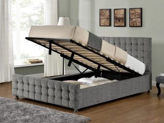 - Space for storing textiles is also present in products with a lifting mechanism. The entire area under the berth can be reserved for storing linen and other things, which makes the structure as spacious as possible. Such a mechanism is raised thanks to shock absorbers of spring or gas type.