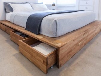 - The bed frame itself can go beyond the boundaries of the berth, creating a kind of pedestal, thanks to which the bed looks more solid and massive.