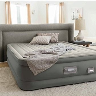 - In some cases, buyers prefer air beds. Products of this type are made of PVC, polyurethane and other artificial materials. They usually do not have backs and frames, more like a mattress. However, they are quite suitable for some styles. The advantage of such products is low cost, and the disadvantage is the low level of resistance to mechanical damage.