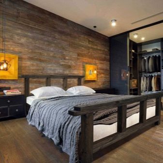 - Shades of natural wood are, first of all, dark and light brown tones. The choice depends on which tree the structure is made of. Some of them, for example, beech and certain oak varieties, have light beige shades, others can be presented in saturated red-brown color. Usually, for all bedroom furniture, including the bed, they use one shade of wood, to combine colors is permissible only in some styles, for example, in a loft.