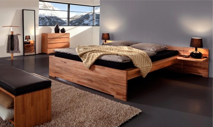 - Wood - one of the most environmentally friendly and durable materials with a beautiful aesthetic appearance. Double beds made of solid wood, as a rule, look the most original, since often their work involves manual work, especially when decorating the headboard. The main species of wood that are used for furniture production are alder, cherry, walnut, oak, cherry, teak.