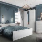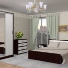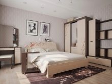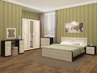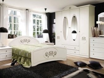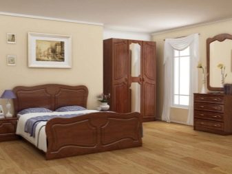 If we consider the classic version of the bedroom set, then it will contain simple wardrobes with 3 wings. If the room is modest in size, then the option with a single-door cabinet, divided into separate modules using a chest of drawers, is suitable. Such a solution opens the walls and visually makes the space wider.