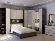 Roomy shows itself as comfortable in operation wardrobe in the bedroom set. No less practical are simpler options that include case modules. Many people choose kits that have built-in closet. Such furniture will save free space in the room, and will allow you to place all the necessary things in it. Not a lot of space will be taken by a small corner cupboard - there are many variations of such furniture.