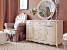 Another component of a sleeping set - chest of drawers. This is a convenient and useful piece of furniture with many drawers. He can also perform the function of a low cabinet.