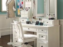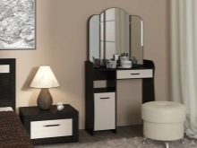 Dressing table - This is an addition to the bedroom headset. This piece of furniture allows you to conveniently put yourself in order, store in a separate place all the perfumes, cosmetics, accessories and jewelry. In most cases, in tandem with dressing tables are small, but very comfortable ottomansthat can be easily removed under the countertop. Sometimes instead of a pouf it is provided small soft chair.
