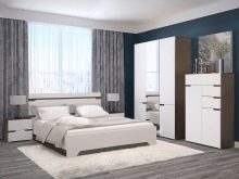 Sleeping Set Included cabinets. If there is no organized dressing room in the dwelling, then the presence of a capacious wardrobe in the furniture ensemble is necessary. This design has many sections and compartments, suspension bases, drawers, shelves for storing a variety of things and objects.