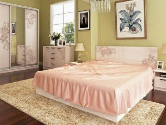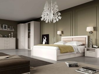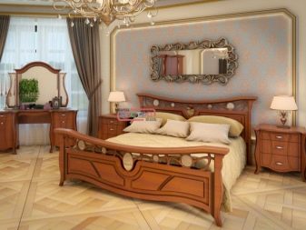 The bed in the bedroom set can be made of different materials. Most often they are made from MDF or chipboard. You can also meet and more original products with forging elements. Beds are available in different dimensional frames.
