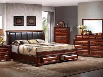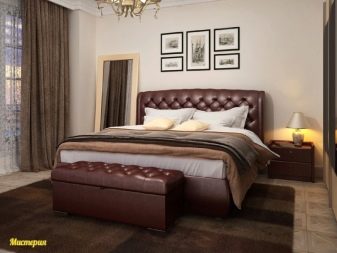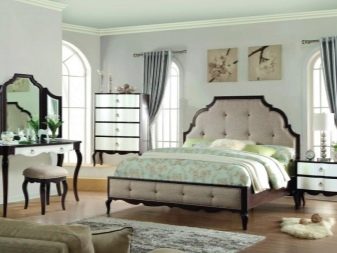 Different types of upholstery materials can be used in the bedroom set. This applies to ottomans, armchairs and the head of the bed. The most expensive will be upholstered options genuine leather.