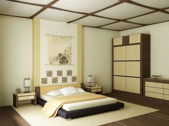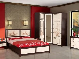 - Japanese style. Kits in this style are small in size. They do not have a lot of details. Japanese headsets are stylish and functional. Usually they consist of a wardrobe, a low bed and small ottomans.