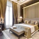 Luxurious bedroom in the style of art deco. The spirit of Italy is embodied in every detail - from a thorough selection of materials to golden elements of decor.