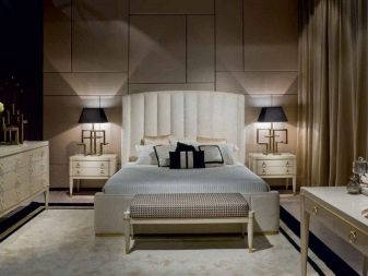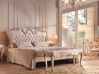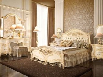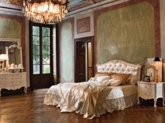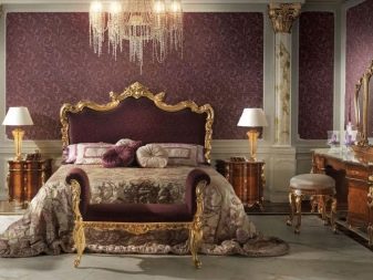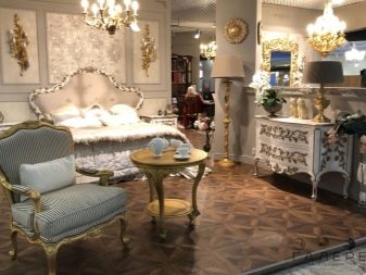 In this case, the decoration of furniture facades uses elements of gilding, patination, overhead volumetric elements or luxurious carvings. Inlay of headboards and facades is appropriate.
