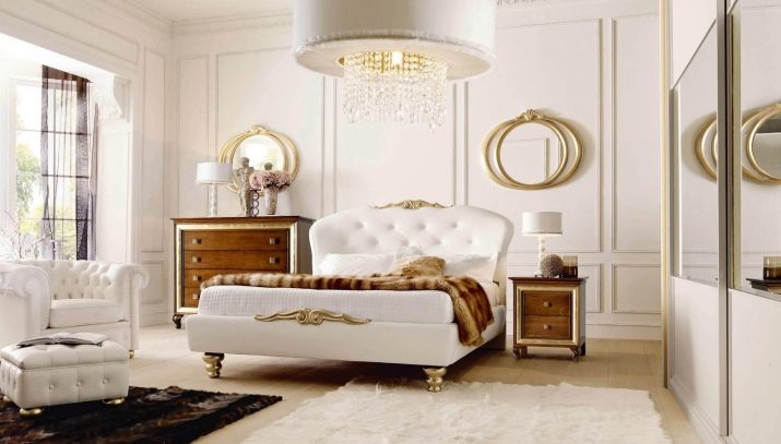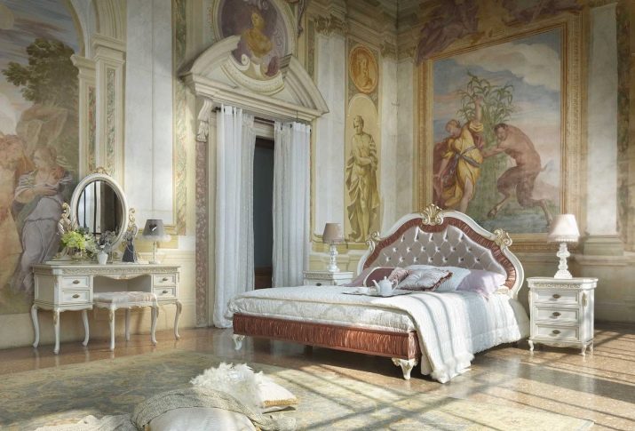 Luxurious and pompous palace style, typical of Italy, looks very attractive in the bedroom interior. This style is ideal for a spacious room.